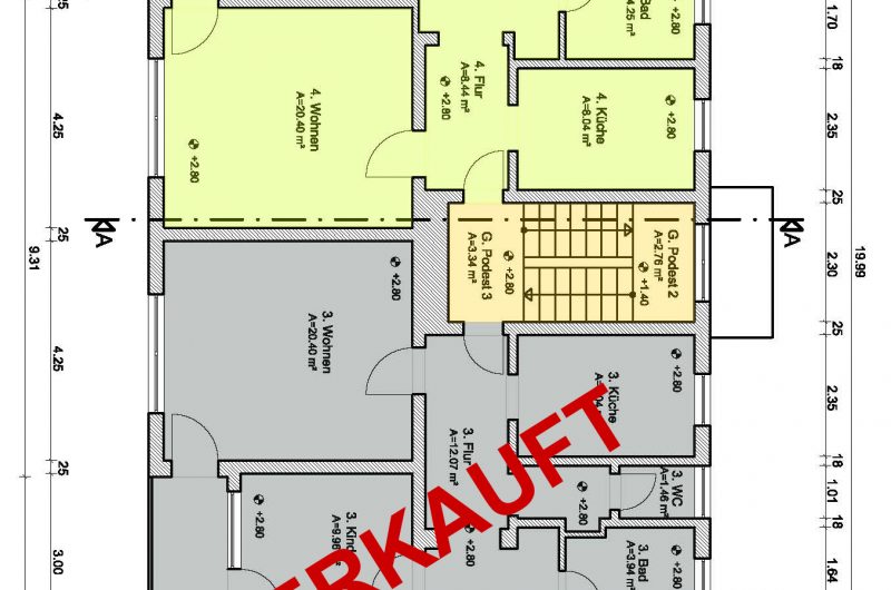 Diese 3-Zimmer-Wohnung Nr. 4 im 1.OG (rechts) hat ca. 71 m² Wfl., Wohnen und 3 Schlafzimmer, sep. Küche, Bad mit Wanne, WT und ein sep. WC, sowie einen Balkon der vom 2 Zimmern begehbar ist.